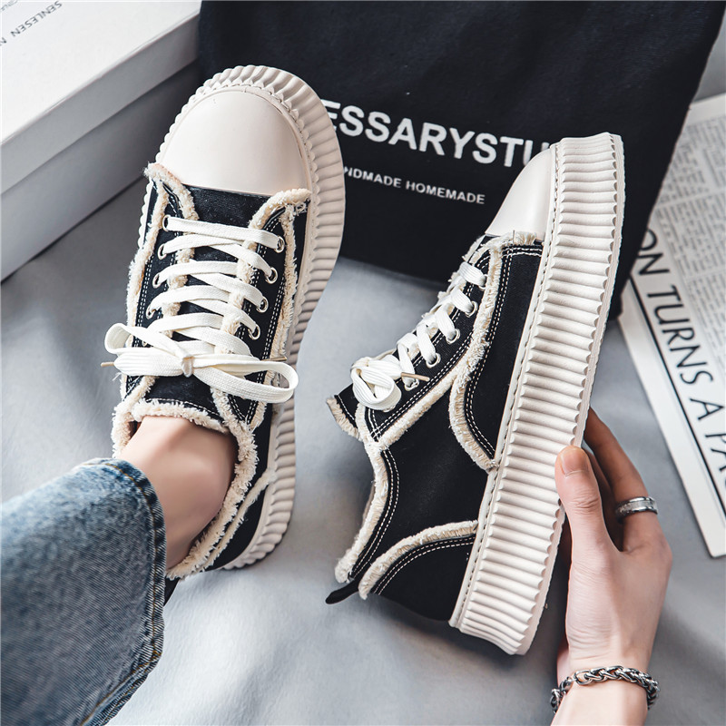 Internet Celebrity Thick-Soled Canvas Shoes for Men | Casual Sneakers, New Season, Lace-Up Closure, Rubber Sole, Fabric Inner, Random Pattern
