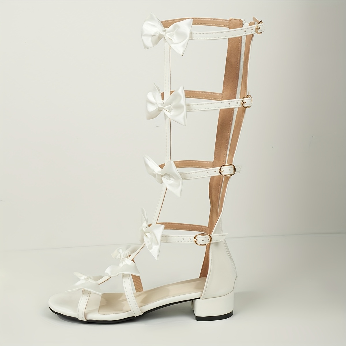 [Retro Sandals] Retro Women’s Sandals | New Roman Style Large Size Fashionable Bow Buckle Soft Surface Hollow Flat Bottom Sandals for Women