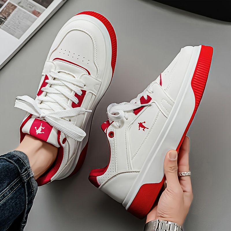 Trendy Brand Men’S Board Shoes | New Model with Raised Surface, Soft Sole, Versatile White, Comfortable and Casual, Low Top, Lace Closure