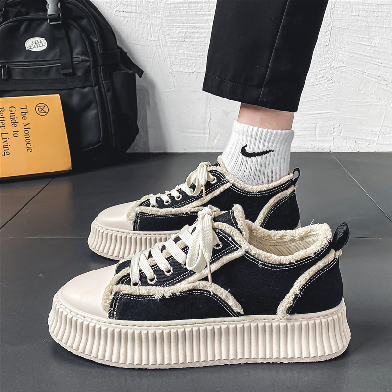 very good Internet Celebrity Thick-Soled Canvas Shoes for Men | Casual Sneakers, New Season, Lace-Up Closure, Rubber Sole, Fabric Inner, Random Pattern – 100% recommend