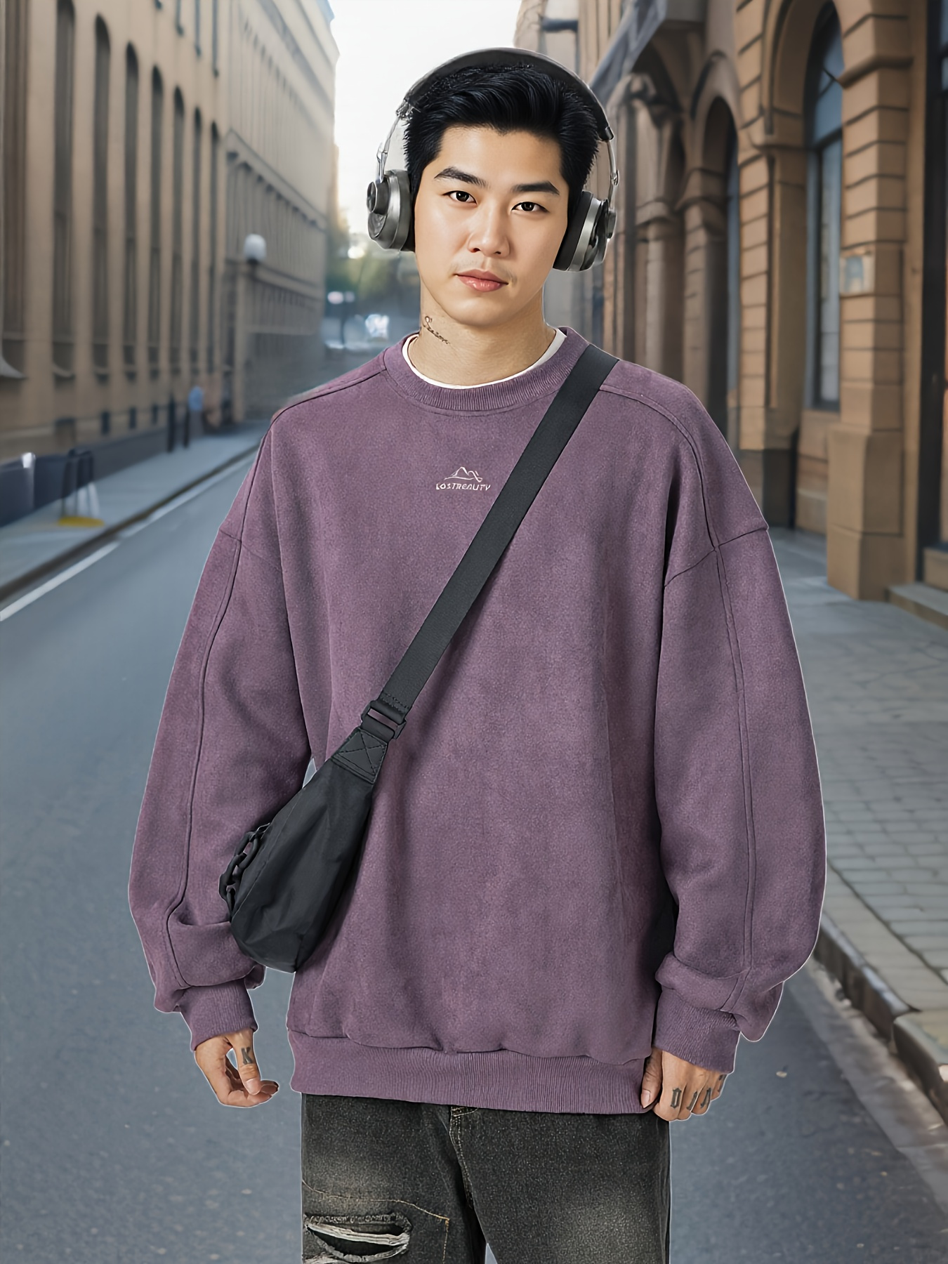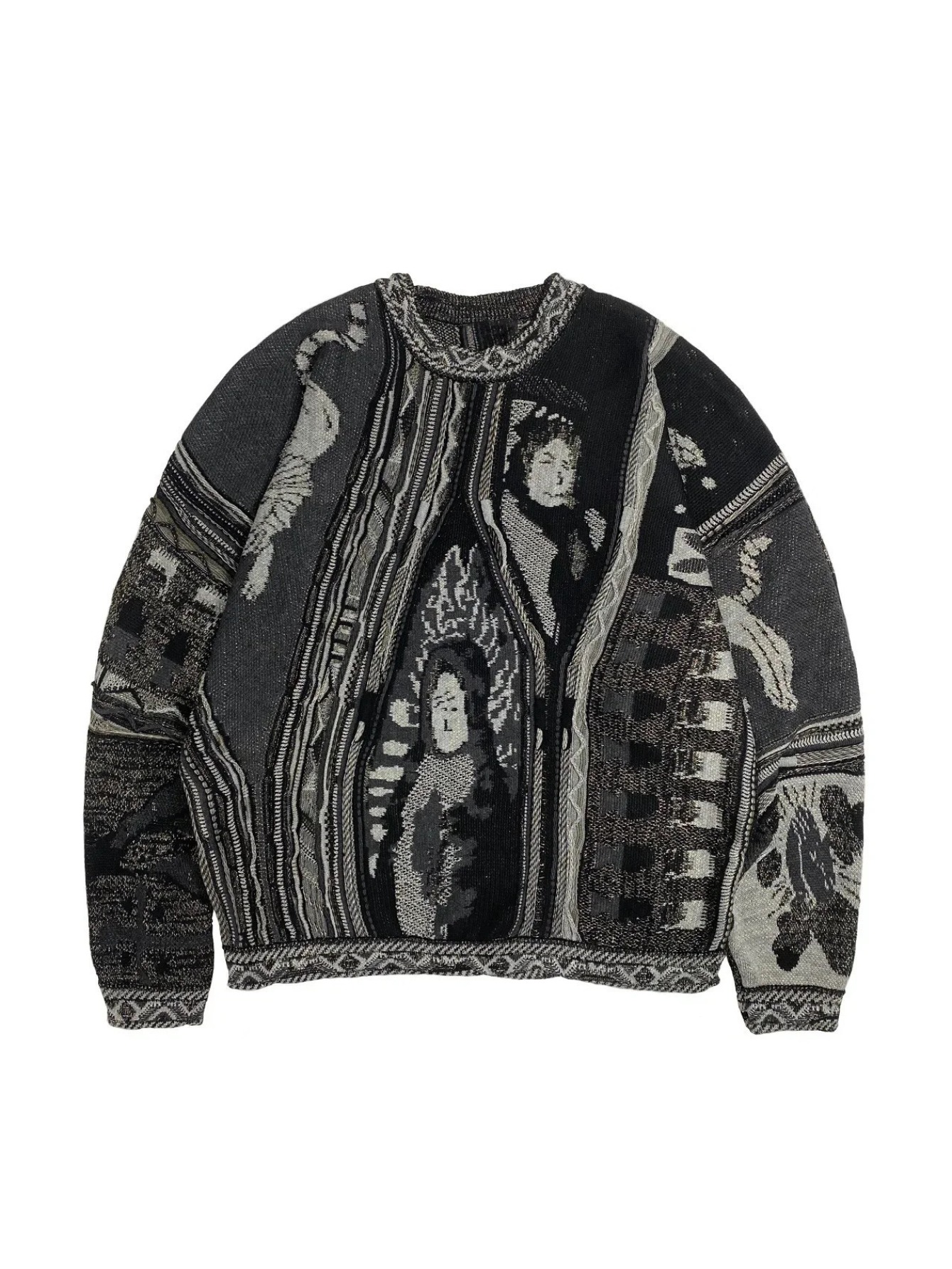 Men’s Retro 3D Digital Print Crewneck Sweatshirt | Asian Inspired Streetwear for Fall & Winter