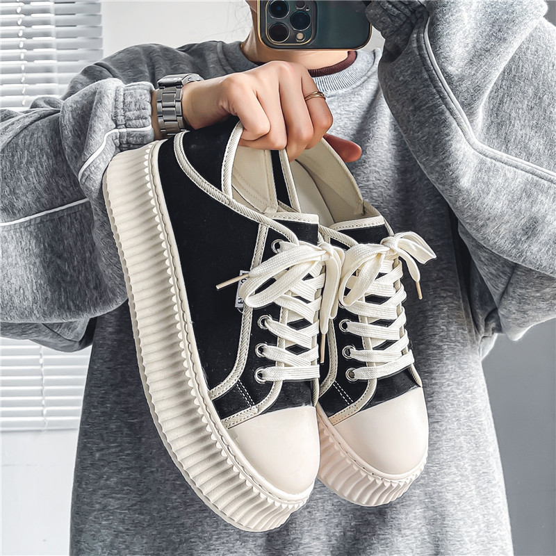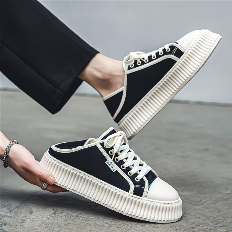 great Men’s Shoes Season New Low-top Thick-soled Canvas Shoes Student Korean Niche Half-cup Two-way Wear Sports Casual Sneakers