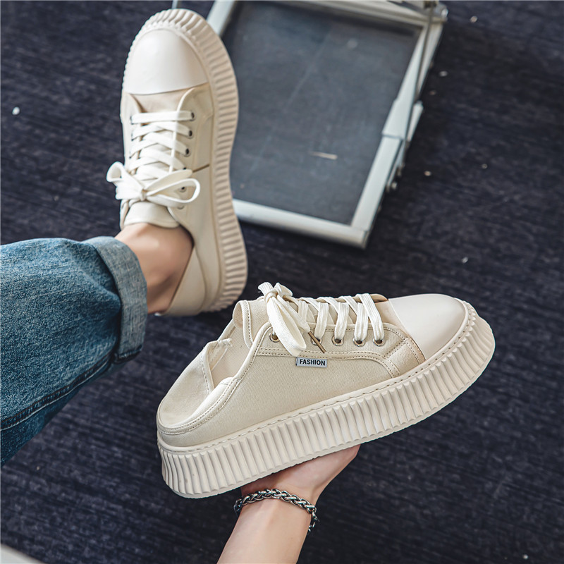 Men’s Shoes Season New Low-top Thick-soled Canvas Shoes Student Korean Niche Half-cup Two-way Wear Sports Casual Sneakers is much better than others