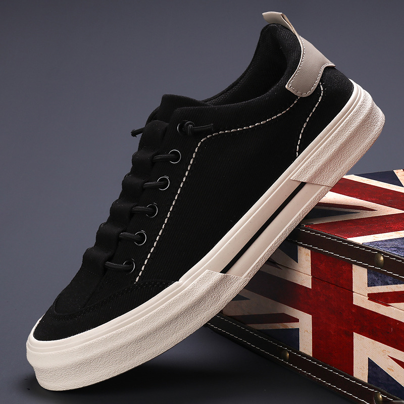 Men’S Comfortable Breathable Flat Canvas Shoes | Fashionable Versatile Low-top Casual Shoes with Lace-up Closure and Rubber Sole