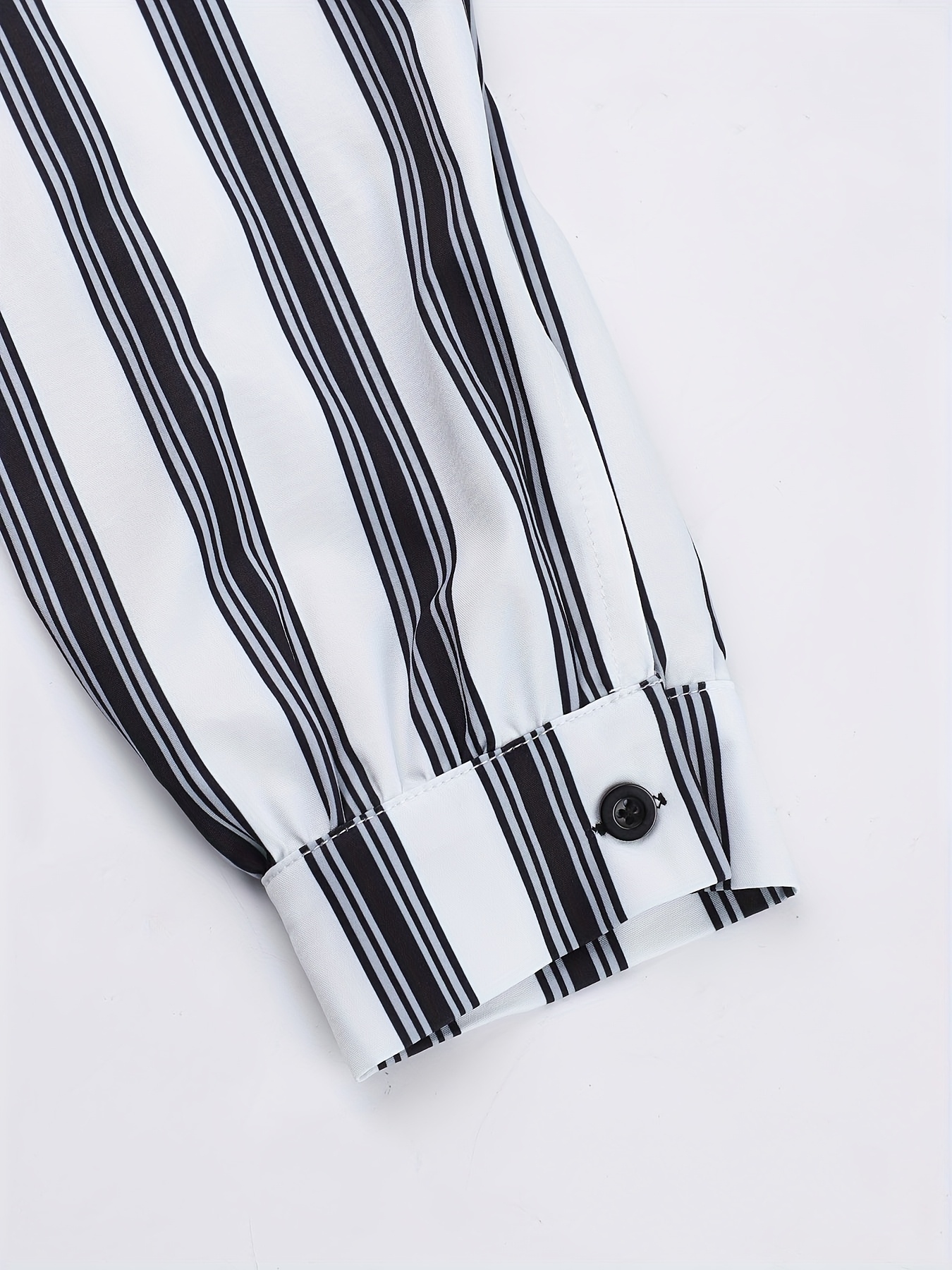 Plus Size, Long sleeved casual office shirt for plus size women, casual striped hollowed out Women’s plus size shirt, long sleeved shirt suitable for autumn and winter