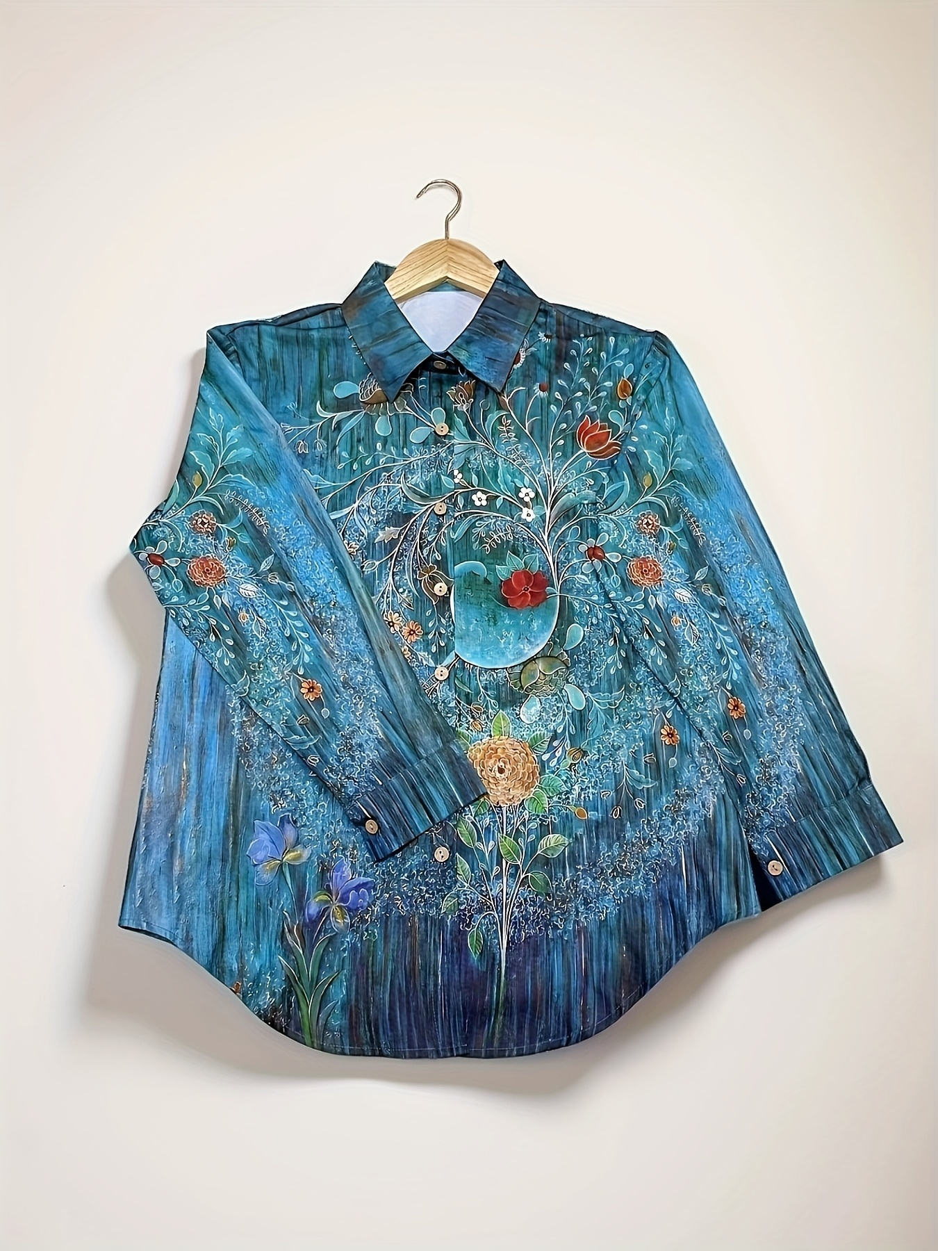 great Plus Size, Women’s Long-sleeved Shirts Plus Size Casual Tops Women’s Fashion Turn- Collar Floral Print Casual Shirt