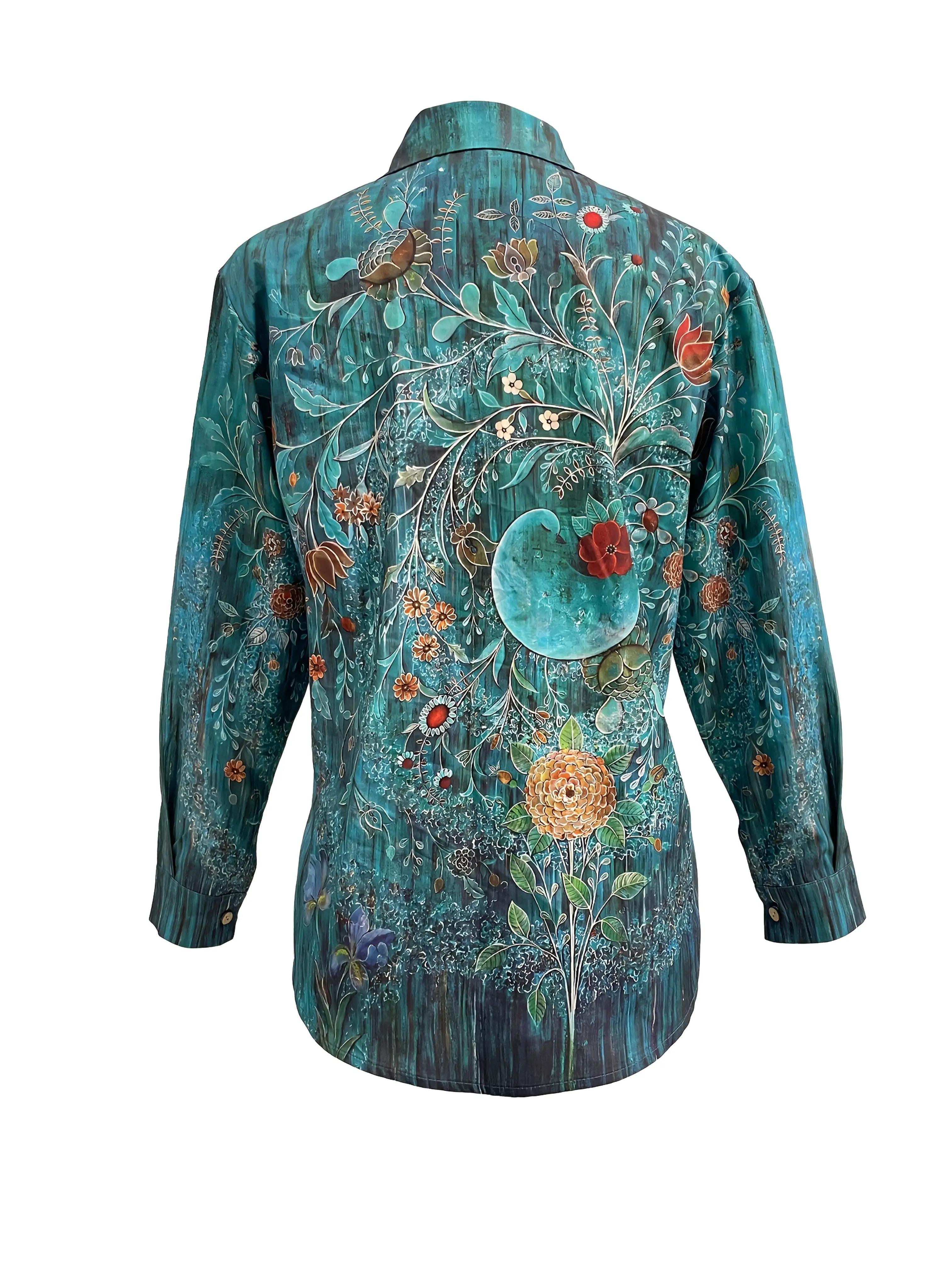 Plus Size, Women’s Long-sleeved Shirts Plus Size Casual Tops Women’s Fashion Turn- Collar Floral Print Casual Shirt