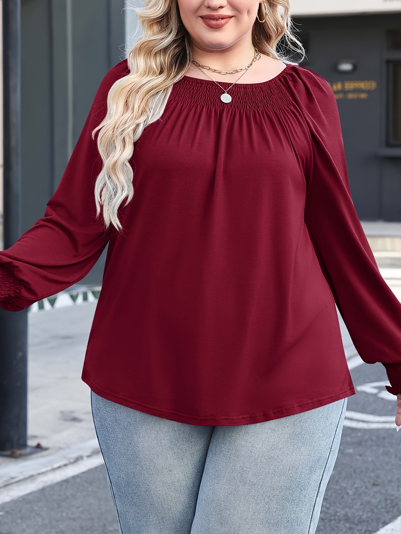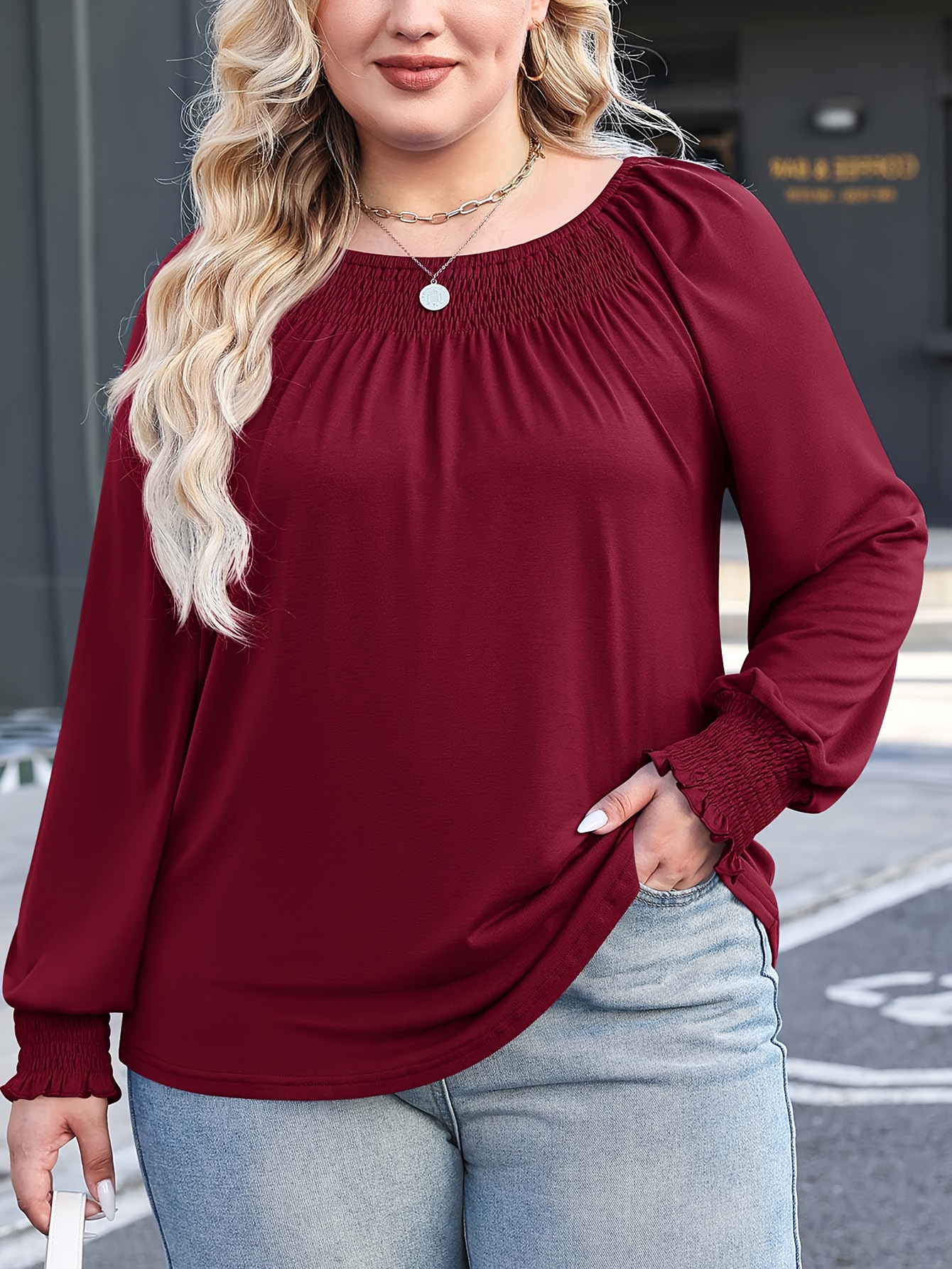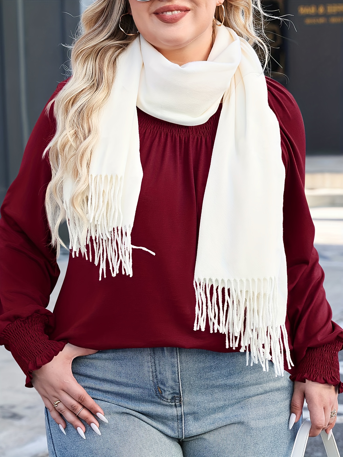 Plus Size, Women’s Plus Size Elegant Pleated Blouse – Long Sleeve Tunic Top with Ruffled Collar & Fit, Deep Burgundy/Red/Navy/Black/Brown, Machine Washable for Office, Work, Travel & Daily Wear – Fall/Winter Season, Comfortable Loose Fit Casual to Dressy Shirts, Blouse for Women, Long Sleeves Evening Tops for Women Plus Size, Women Plus Size Blouse, Blouses for Women High Quality, Long Sleeve for Women Plus Size
