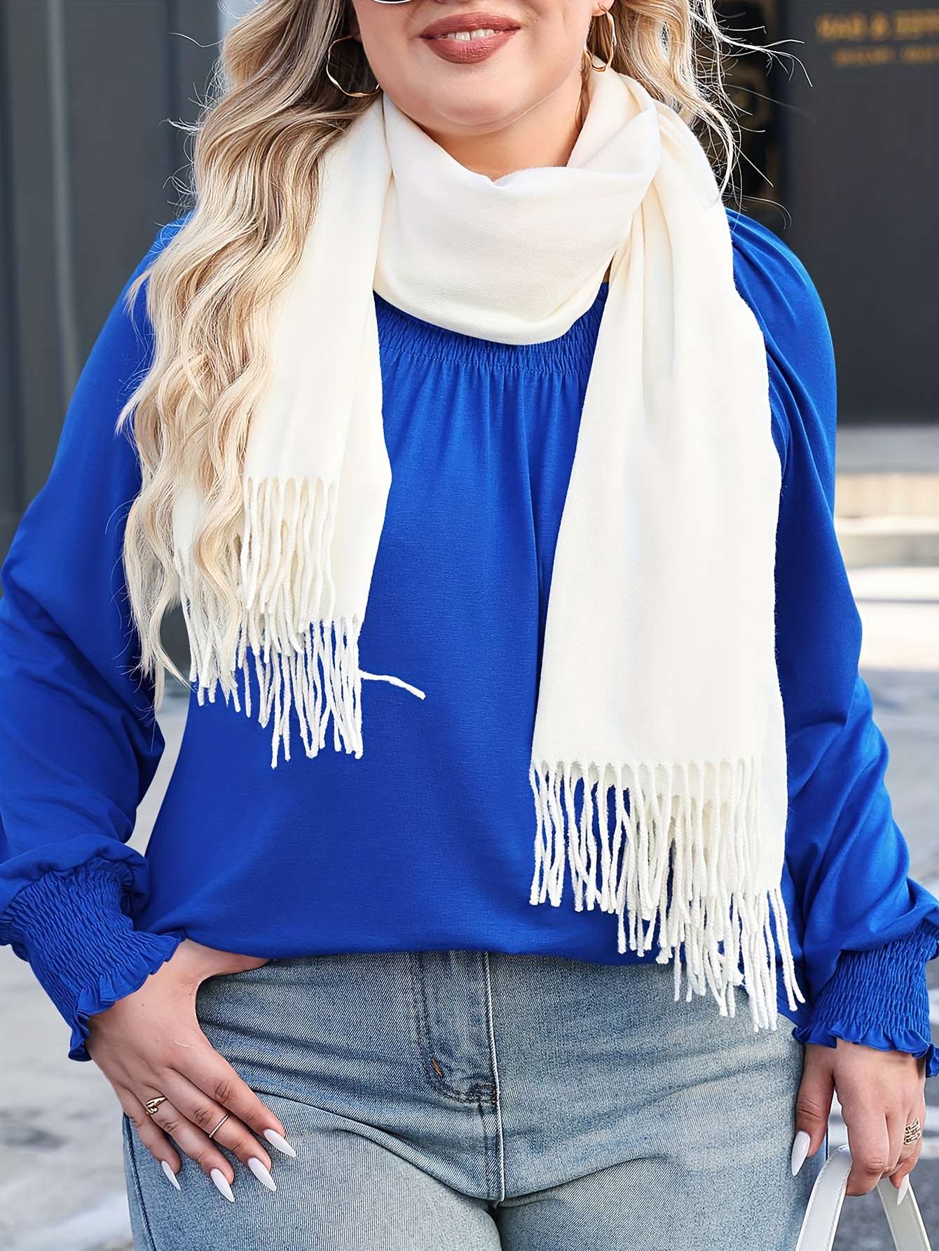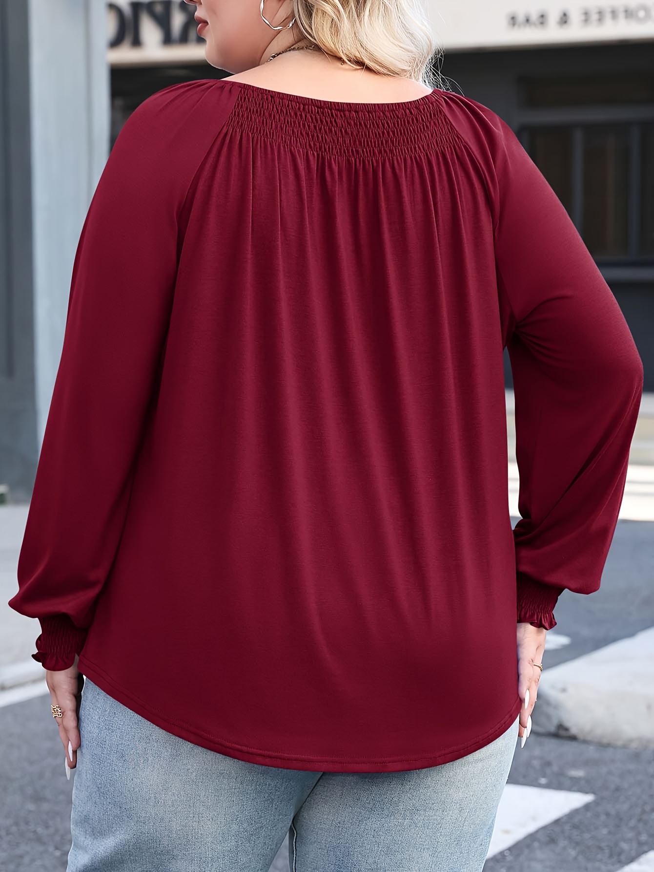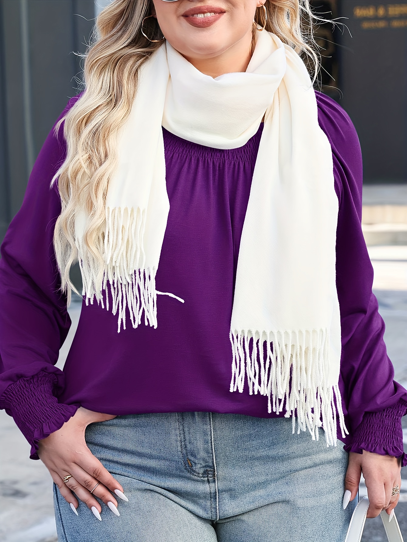 Plus Size, Women’s Plus Size Elegant Pleated Blouse – Long Sleeve Tunic Top with Ruffled Collar & Fit, Deep Burgundy/Red/Navy/Black/Brown, Machine Washable for Office, Work, Travel & Daily Wear – Fall/Winter Season, Comfortable Loose Fit Casual to Dressy Shirts, Blouse for Women, Long Sleeves Evening Tops for Women Plus Size, Women Plus Size Blouse, Blouses for Women High Quality, Long Sleeve for Women Plus Size