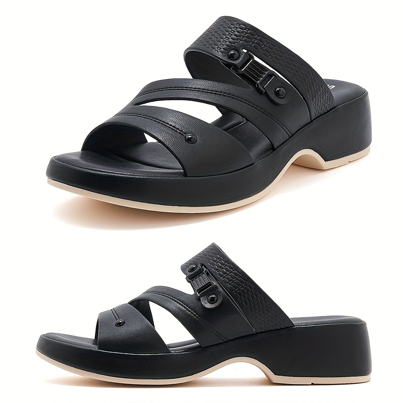 8 reviews for Women’S Black Sandals – Casual Summer Sandals with Buckle Closure, Comfortable Synthetic, Mid-Heel, Elegant Strap Design for Casual Attire, Casual Footwear | Elegant Strap Sandals | Comfortable Footwear