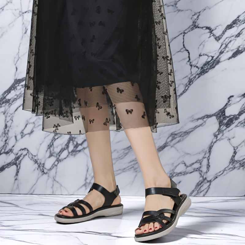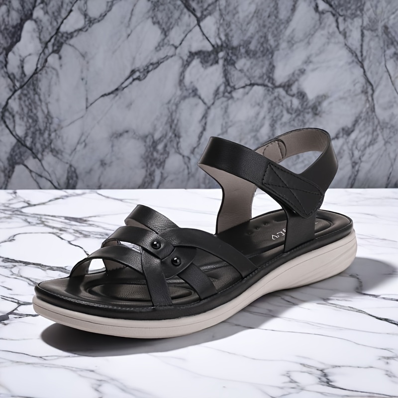 Women’S Black Sandals – Casual Summer Sandals with Buckle Closure, Comfortable Synthetic, Mid-Heel, Elegant Strap Design for Casual Attire, Casual Footwear | Elegant Strap Sandals | Comfortable Footwear
