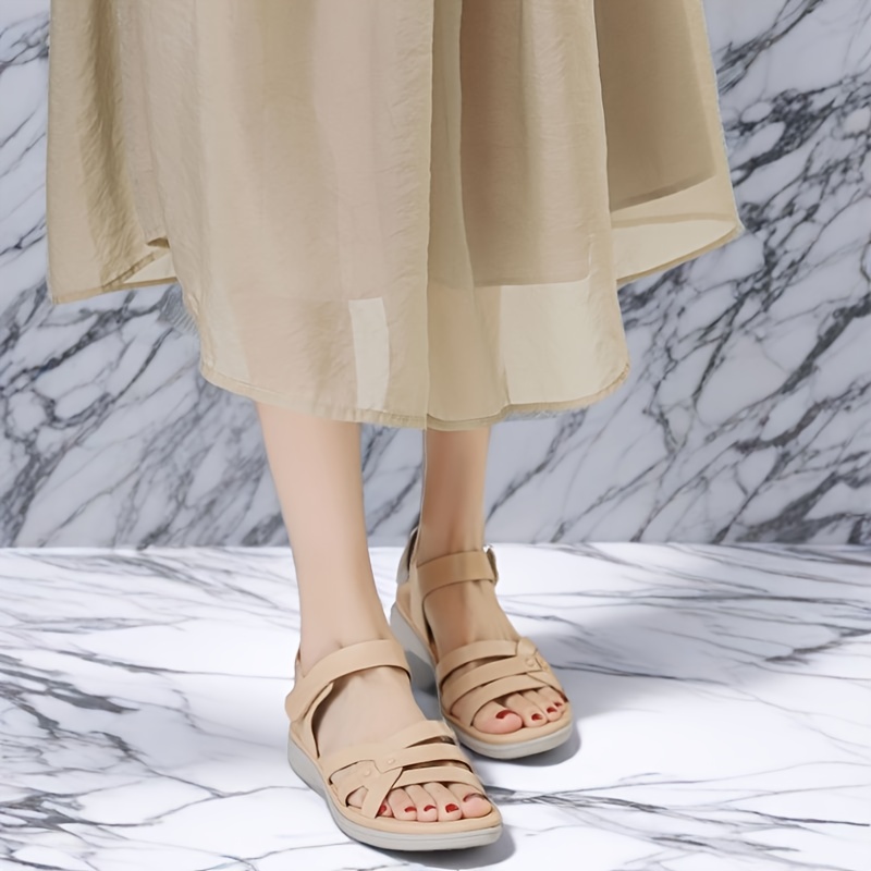[Casual Strappy Sandals] Summer Women’s Casual Ankle Strap Flat Sandals – Breathable Cut-Out Fisherman Sandals With Round Toe, Ankle Strap Closure & Non-Slip Rubber Sole For Beach, Vacation, Casual Attire (White, Beige, Pink), Strappy Sandals, Beach Footwear, Intricate Cutouts