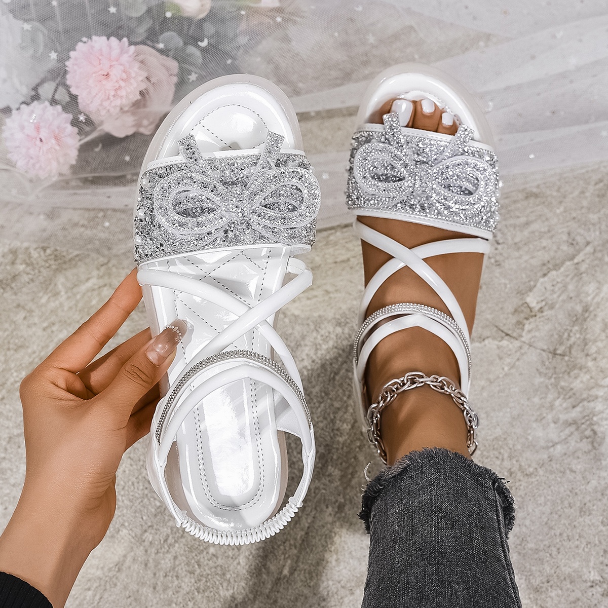 Women’S Sparkling Rhinestone-Embellished Slip-On Flat Sandals – Open-Toe Synthetic Cover with Cushioned Rubber Sole for Casual & Formal Occasions, Ladies Shoes And Sandals, Evening Wear, Glamorous Accessory, Durable Construction, Stylish Footwear, Fashion Lovers